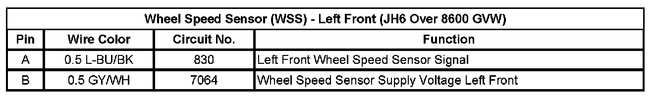 Wheel Speed Sensor (WSS) - Left Front (JH6 Over 8600 GVW)