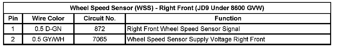 Wheel Speed Sensor (WSS) - Right Front (JD9 Under 8600 GVW)
