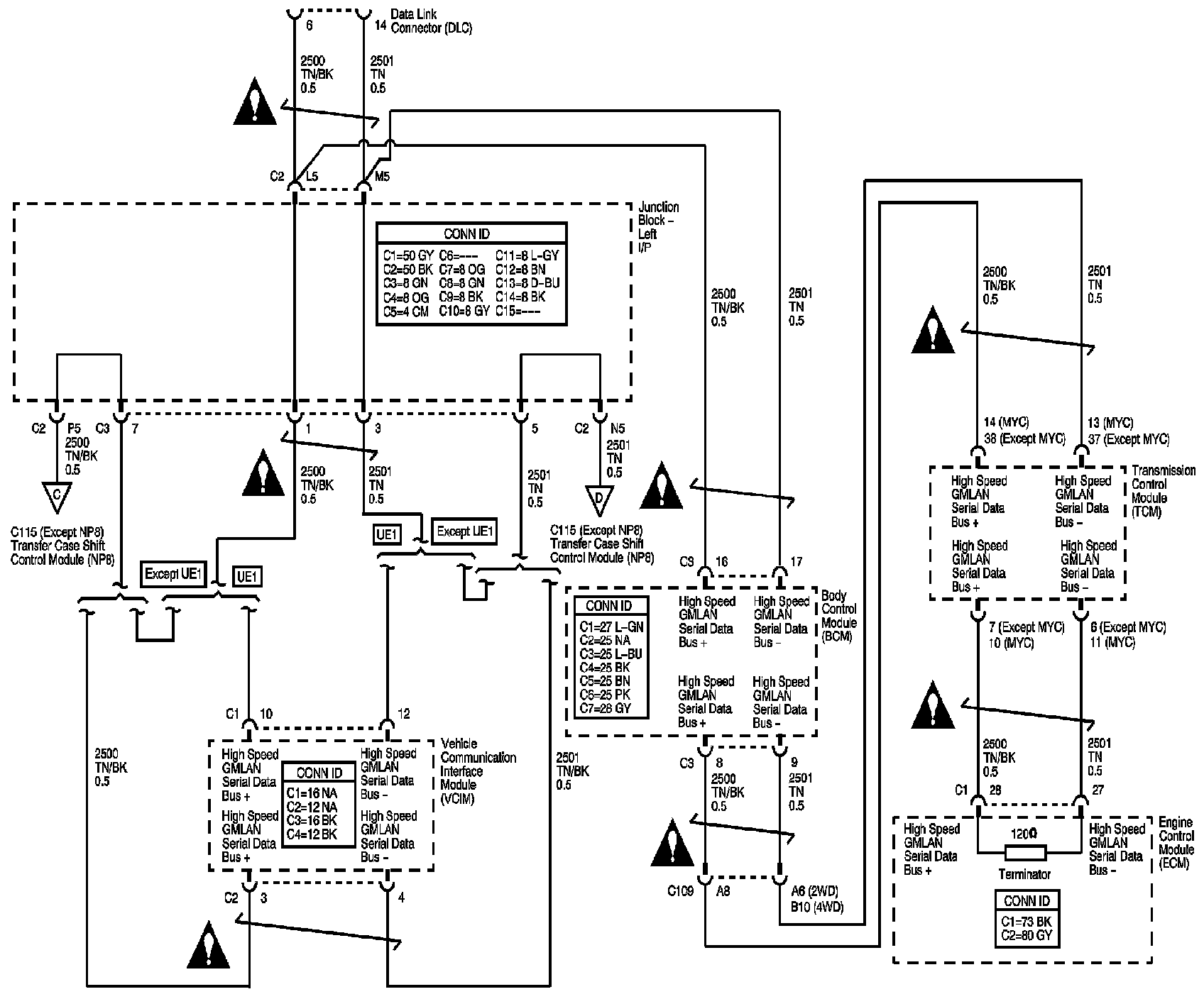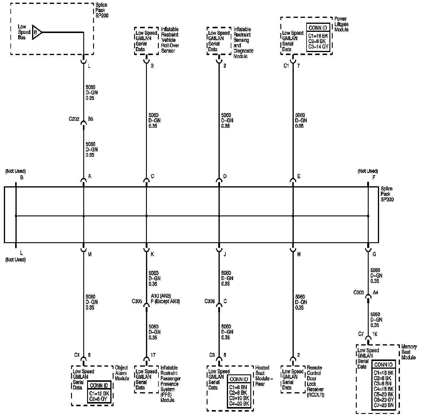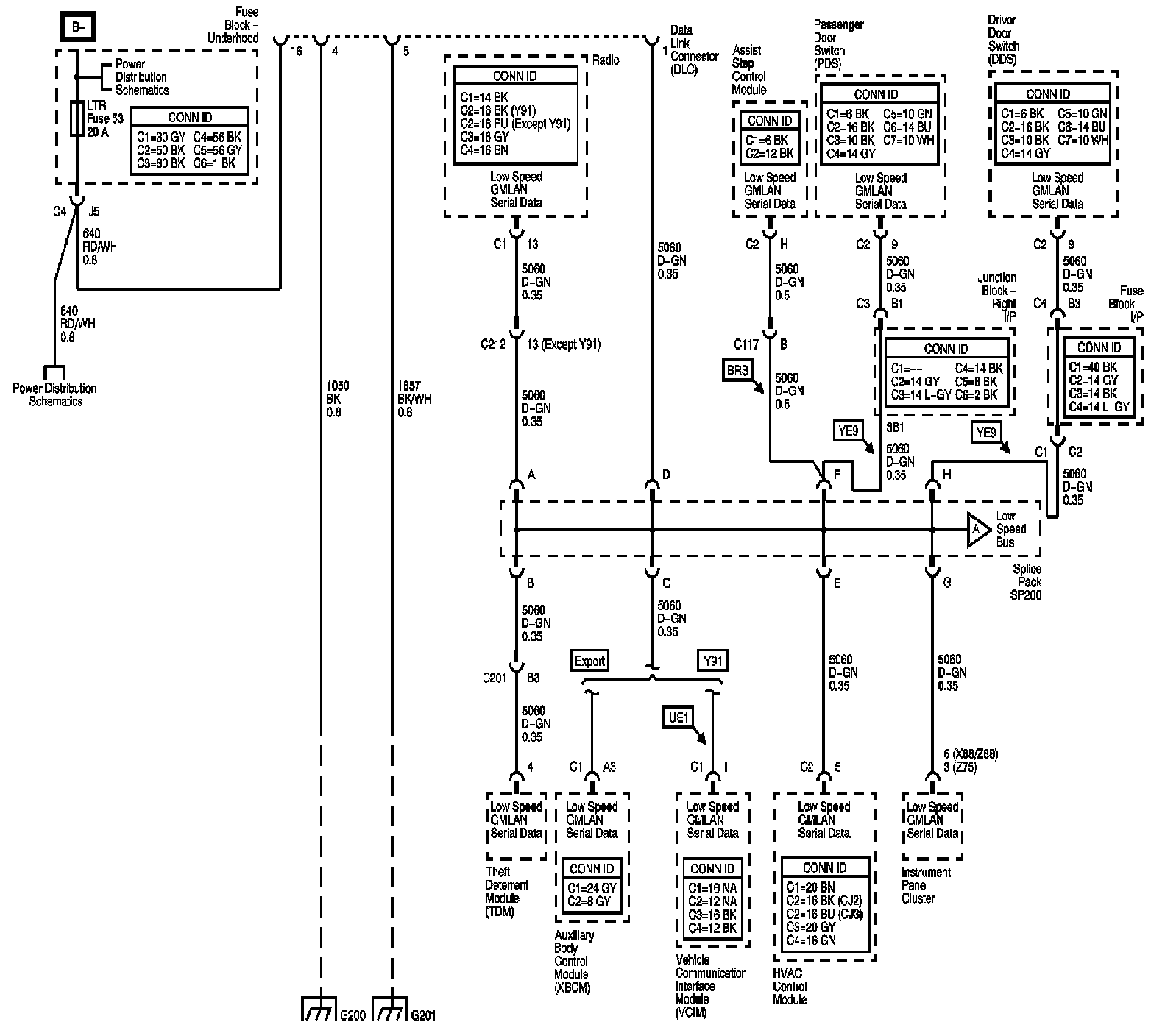 Locations: The locations for the Connectors, Grounds, Splices, and Grommets shown within these diagrams can be found via their numbers at Vehicle Locations. Locations