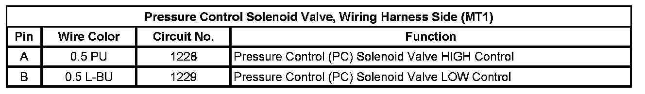 Pressure Control Solenoid Valve, Wiring Harness Side (MT1)
