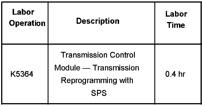 A revised transmission calibration has been developed to address these issues. Reprogram the transmission control module (TCM) with updated calibration files using the TIS2WEB Service Programming System (SPS) application. As always, make sure your Tech 2(R) is updated with the latest software version.