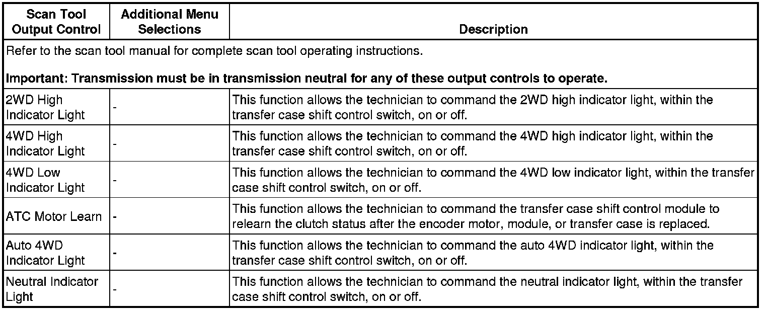 Scan Tool Output Controls