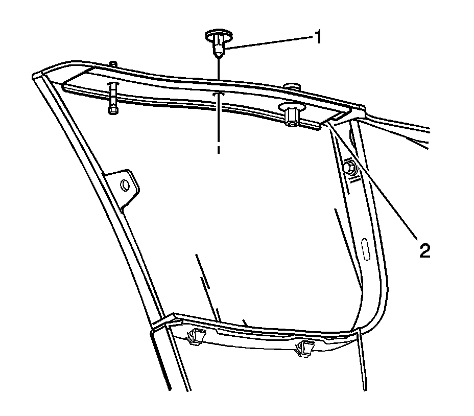 2.Remove the push-in retainer (1) that secure the fascia reinforcement (2) to the fascia by cutting with diagonal cutters.