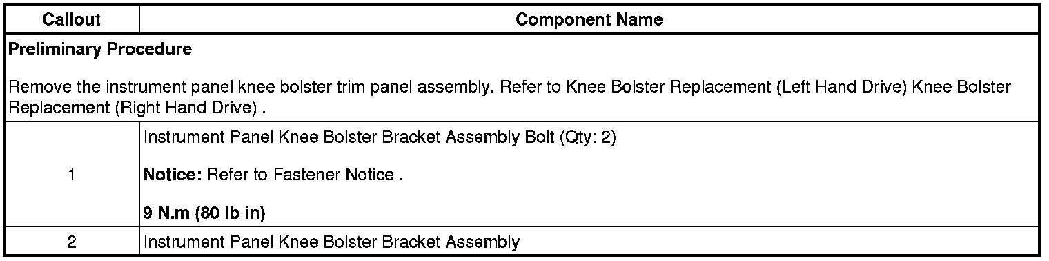 Driver Knee Bolster Bracket Replacement (Left Hand Drive)