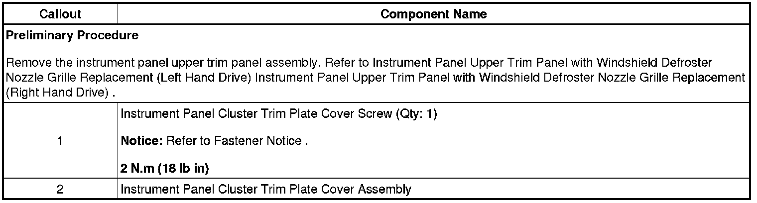 Instrument Panel Cluster Trim Plate Cover Replacement (Left Hand Drive )