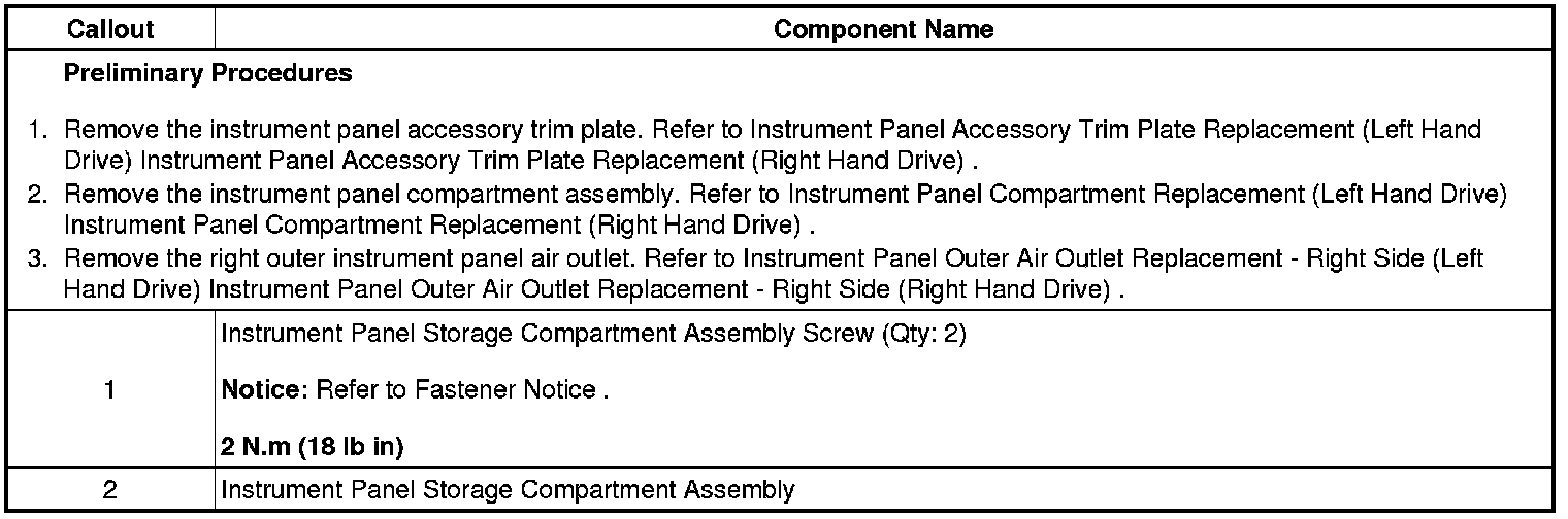Instrument Panel Storage Compartment Replacement (Right Hand Drive)