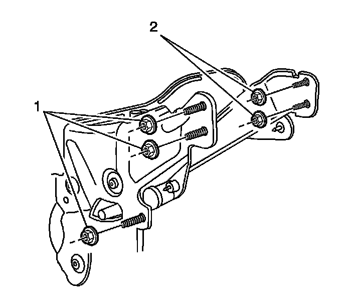 7. Install the 2 steering column support bracket to I/P carrier mounting nuts (2).