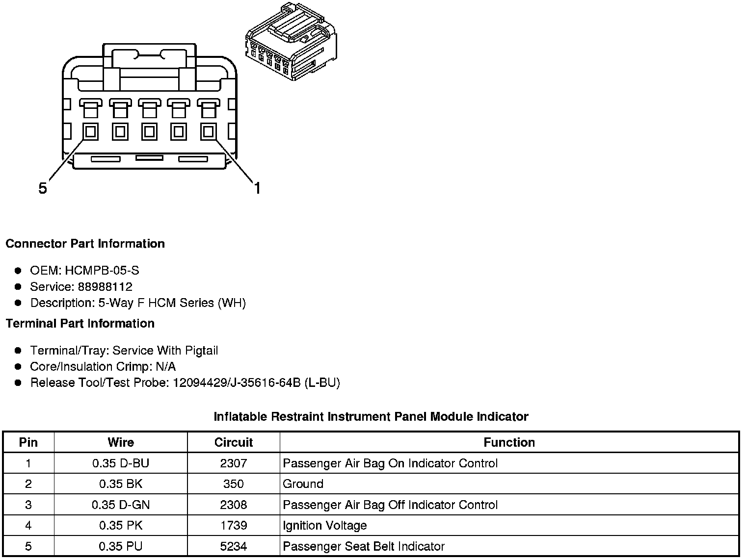 Inflatable Restraint Instrument Panel Module Indicator