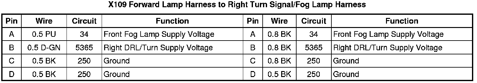 X109 Forward Lamp Harness to Right Turn Signal/Fog Lamp Harness