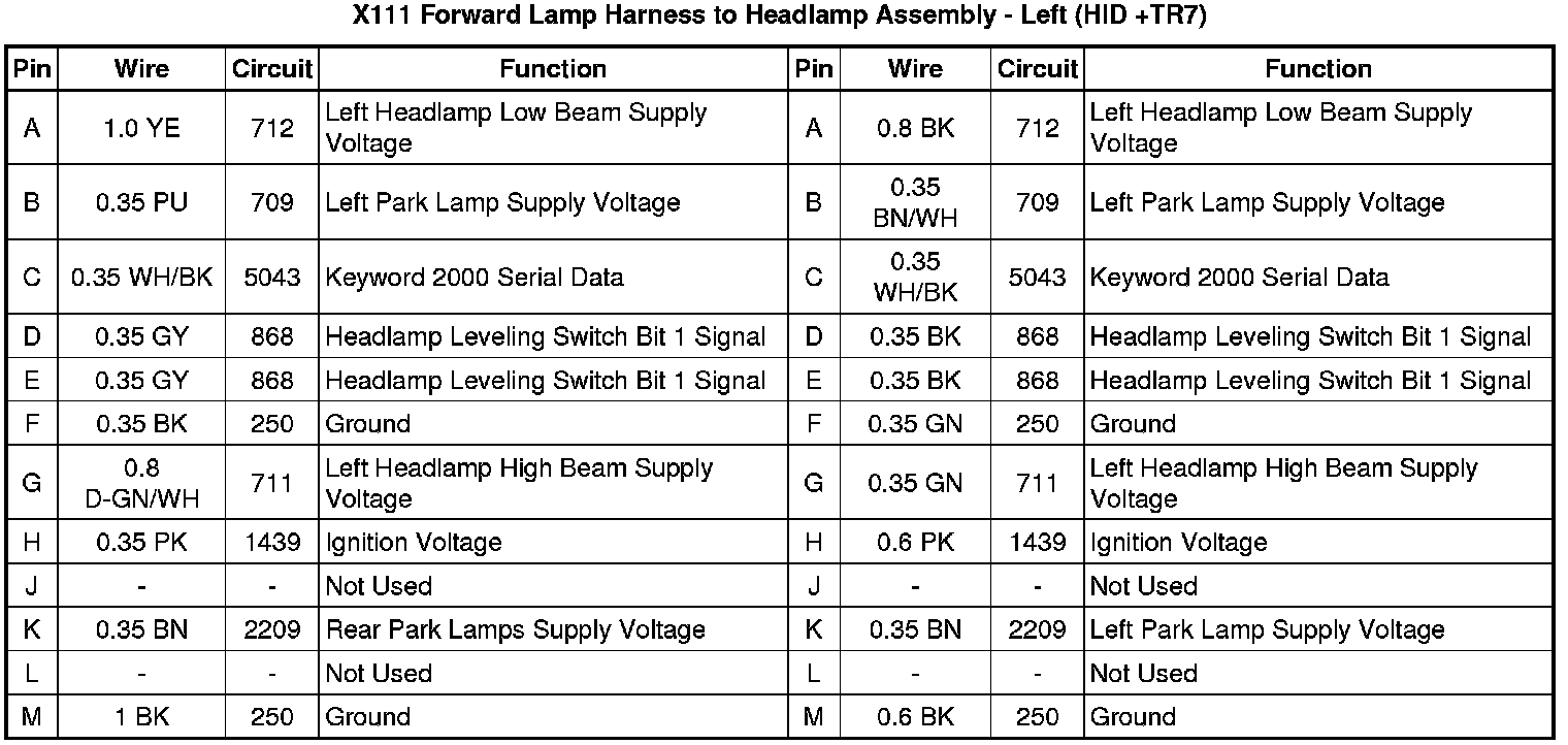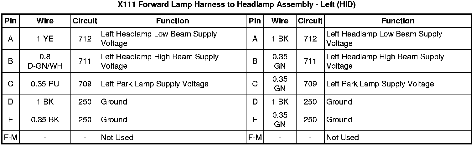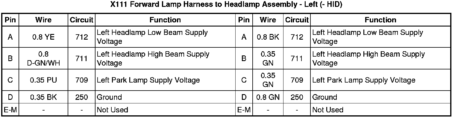 X111 Forward Lamp Harness to Headlamp Assembly - Left (- HID)