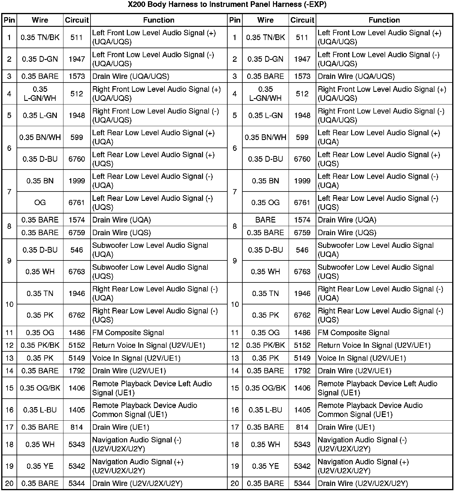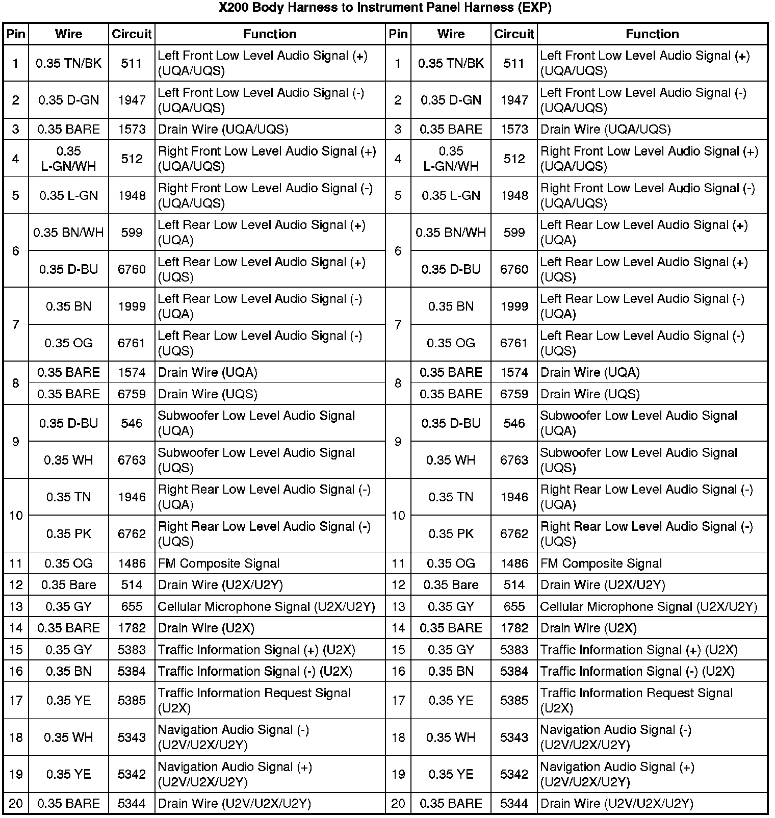 X200 Body Harness to Instrument Panel Harness (-EXP)
