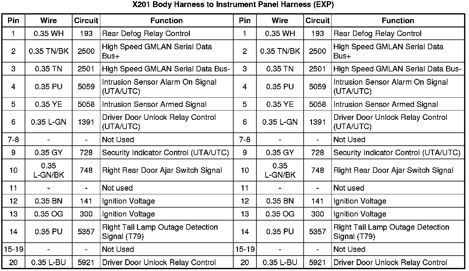 X201 Body Harness to Instrument Panel Harness (-EXP)