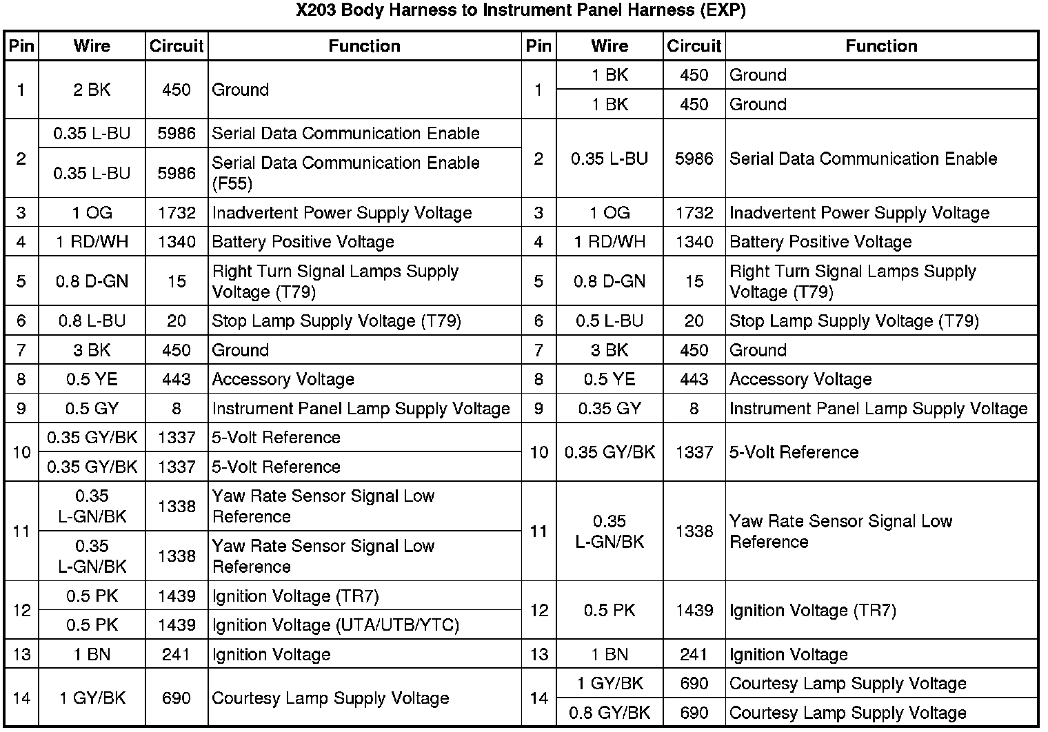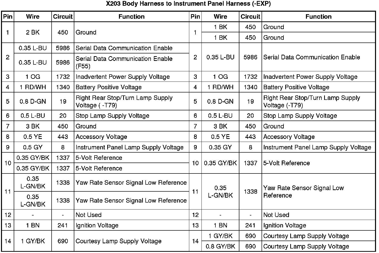 X203 Body Harness to Instrument Panel Harness (EXP)