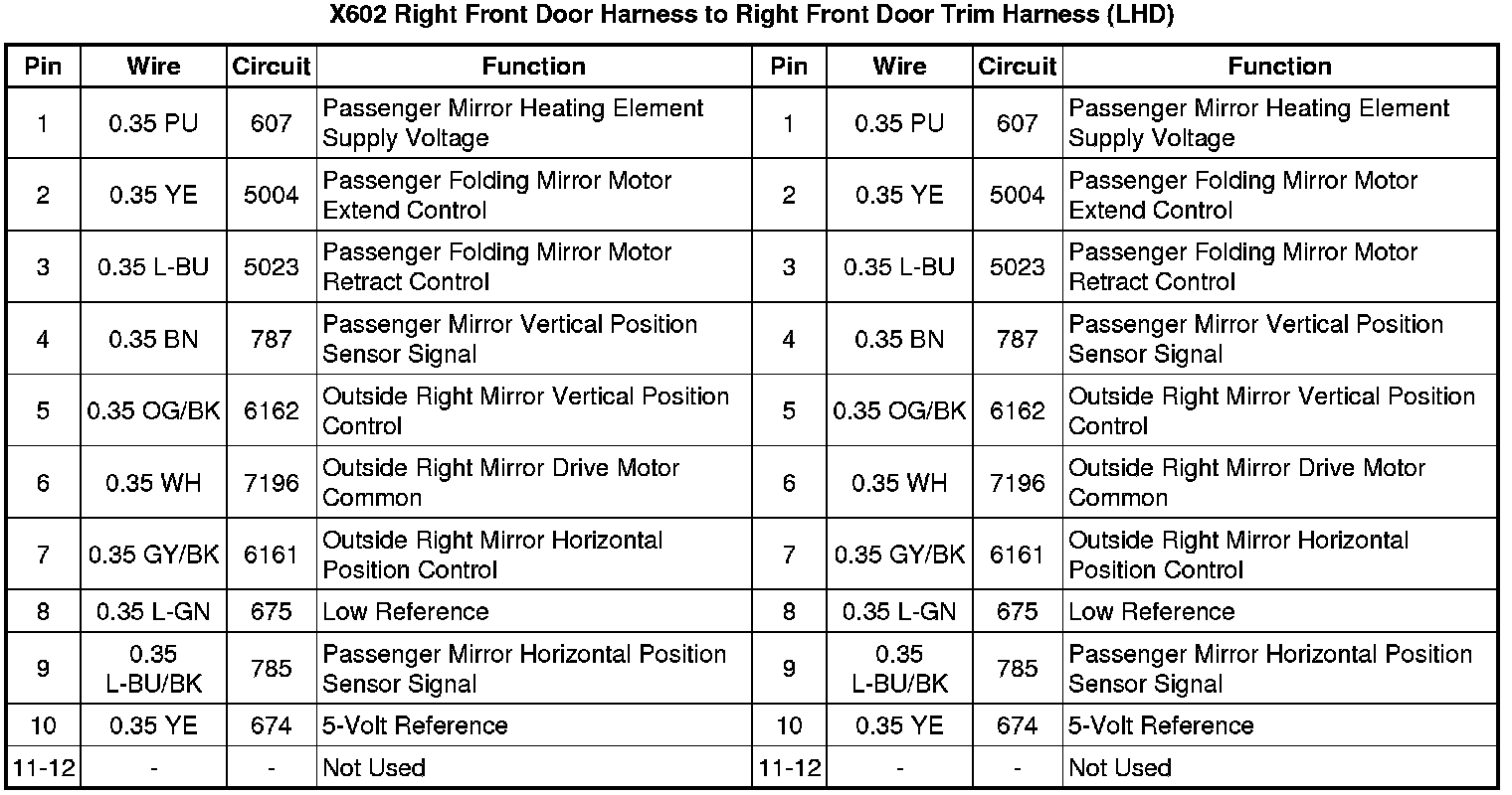 X602 Right Front Door Harness to Right Front Door Trim Harness (LHD)