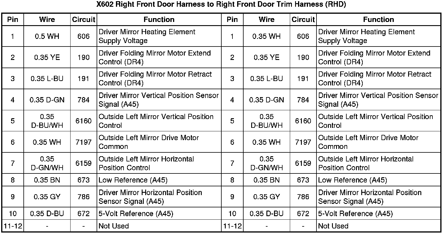 X602 Right Front Door Harness to Right Front Door Trim Harness (RHD)