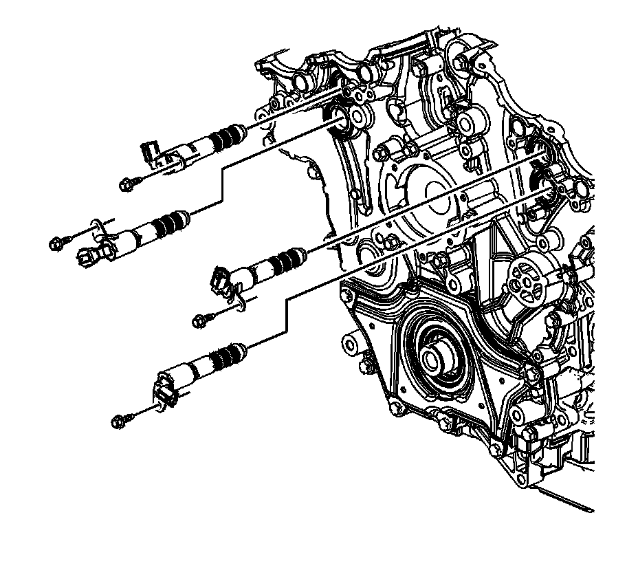 10. Place the camshaft position actuator valves in position on the front cover.