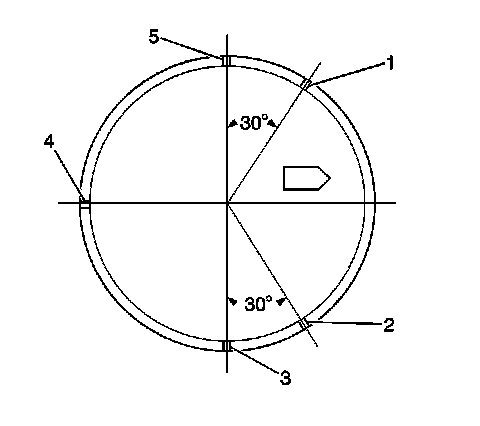 4. Once the rings are installed, set the ring gaps for the oil control, second and top ring as follows. Use the piston location arrow for reference.