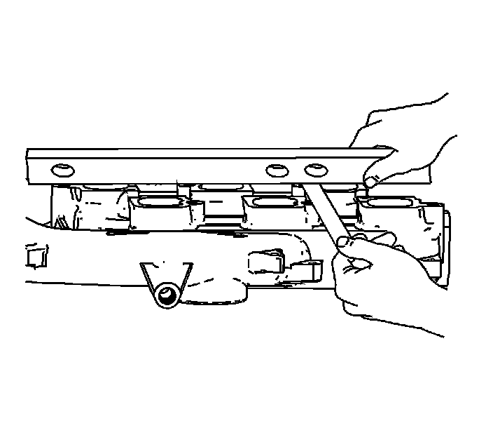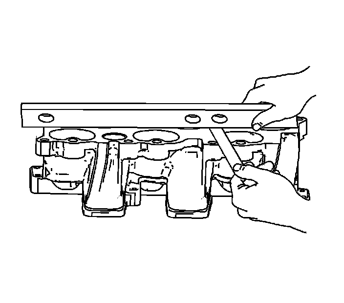 1. Locate a straight edge across the lower intake manifold sealing surfaces.