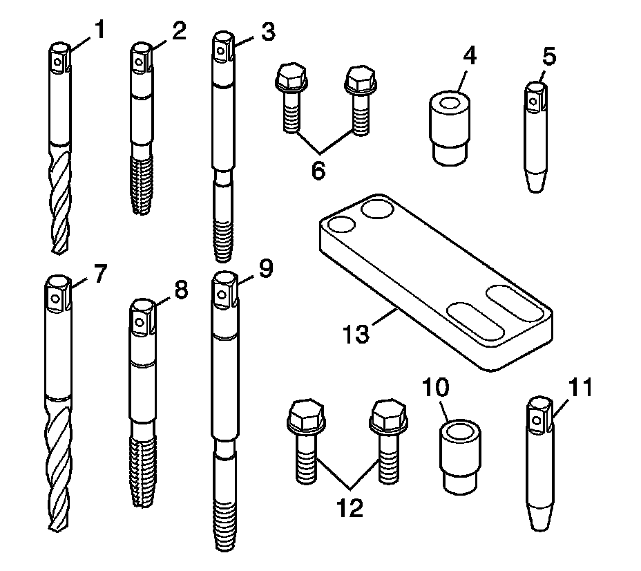 The cylinder head bolt hole thread repair tooling are in the kits J 42385-2000 and J 42385-700. The cylinder head bolt hole thread repair components consist of the following: