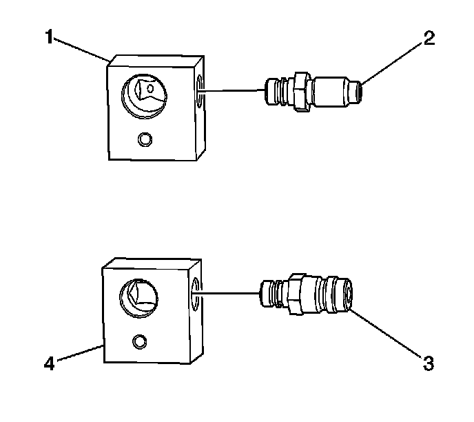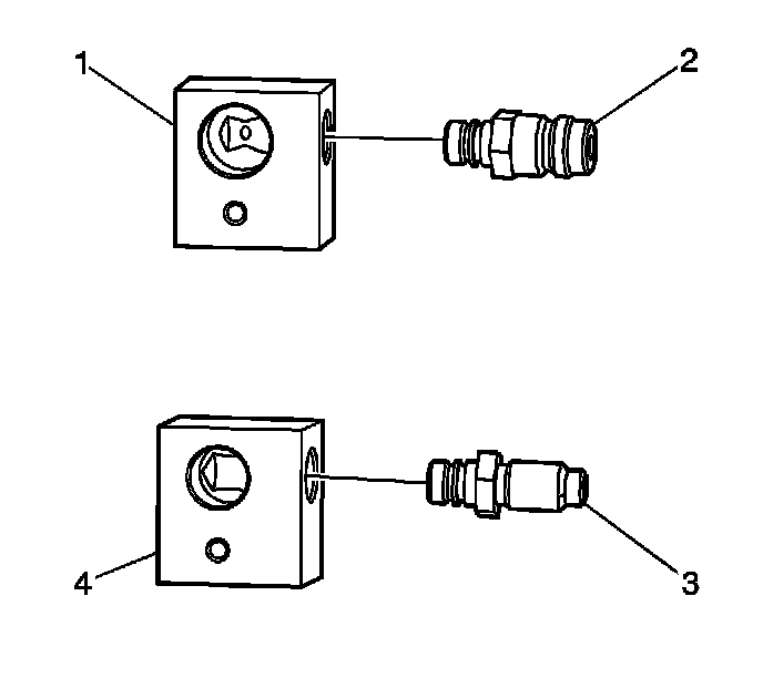 2. Install the J 45268-8 (3) onto the discharge line adapter block J 45268-12 (4).