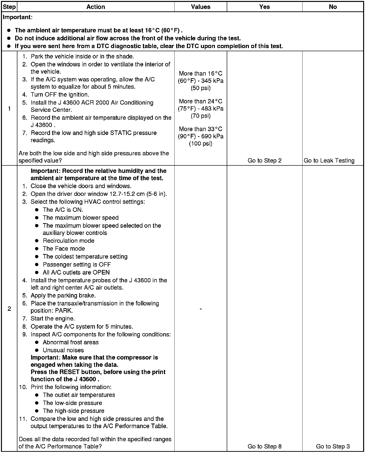 1. This step determines if the A/C system has at least the minimum refrigerant charge required to operate the system without damage.