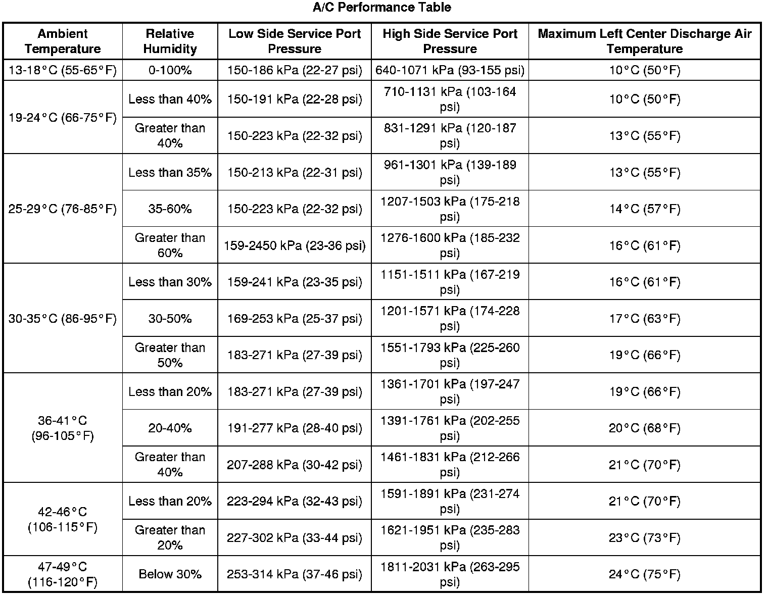 Air Conditioning (A/C) System Performance Test (LY7 - w/o C57 - Standard Cooling)