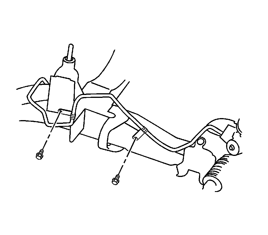4. Remove the power steering gear inlet and outlet hose retaining bolts.