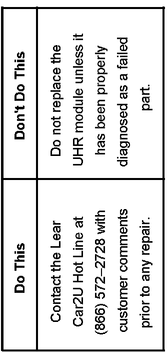 Technicians should first refer to PIT4073A for overall programming information. Next, contact Lear Car2U Hot Line for assistance prior to any repair. Please have the customer's original comments and your preliminary findings before making the call.