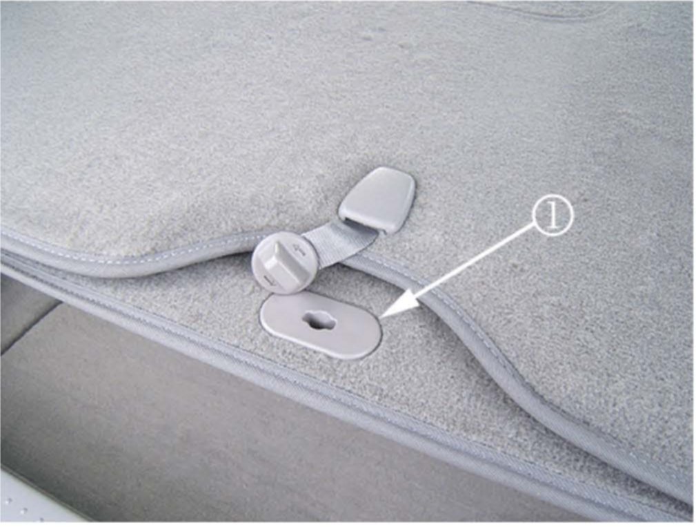 Install the key lock side of the latch bezel (1) through the top of the seat back panel with the two plastic pins in the down position.