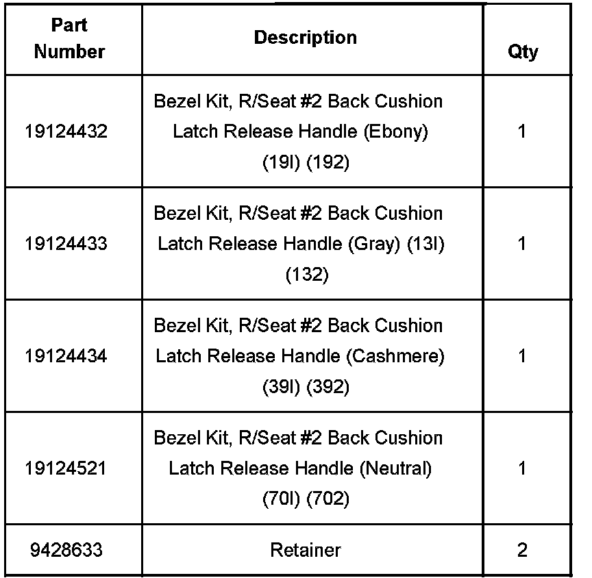 Third Row Seat May Not Fold Up or Down, Seat Back Panel May Not Stay Folded and Latch Bezel is Separated or Loose (Install Seat Bezel Kit)