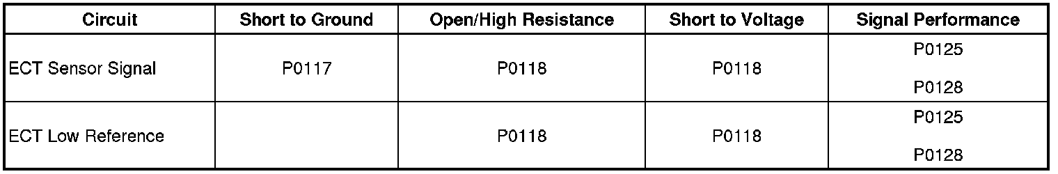 An example table from an engine coolant temperature (ECT) procedure: