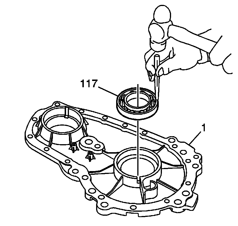 1. Install the input shaft bearing (117) into the case (1).