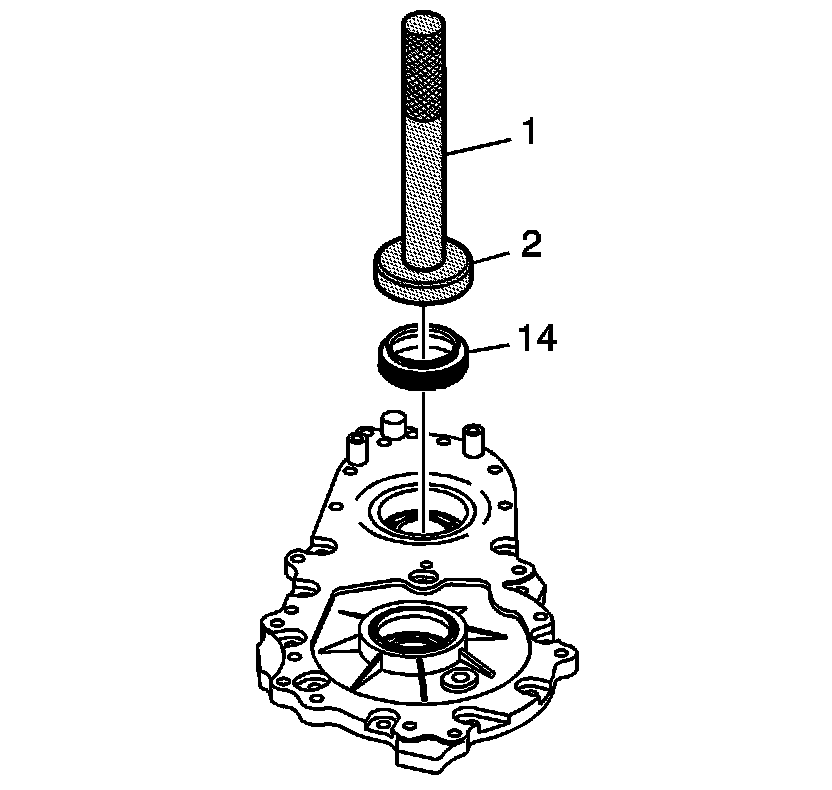 4. Using the J 46268 (2) and the J 8092 (1), install the front output shaft oil seal (14).