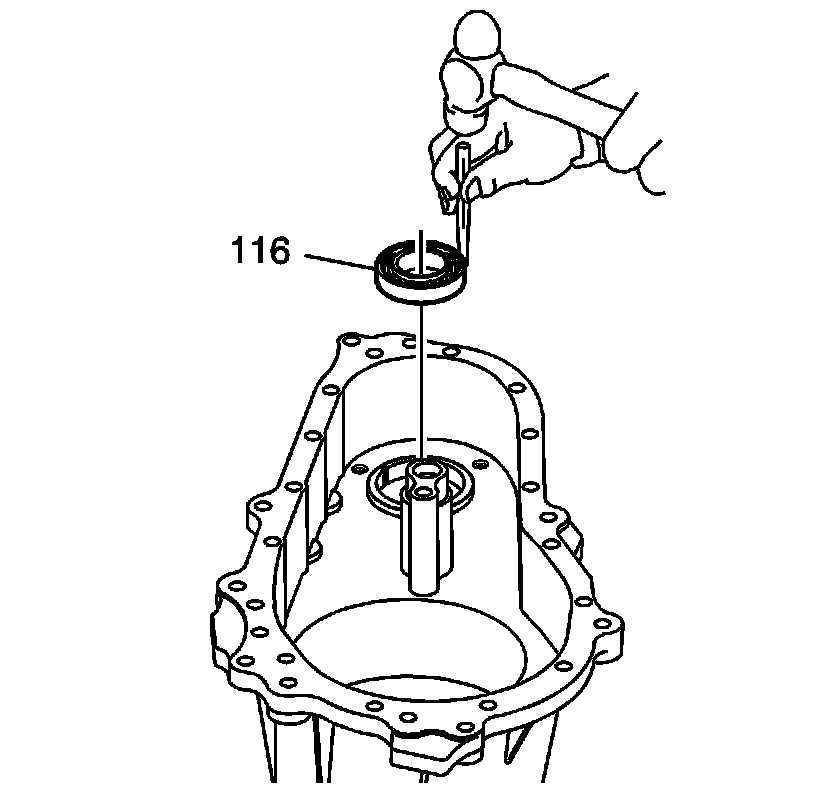 23. Install the front output shaft inner bearing (116).