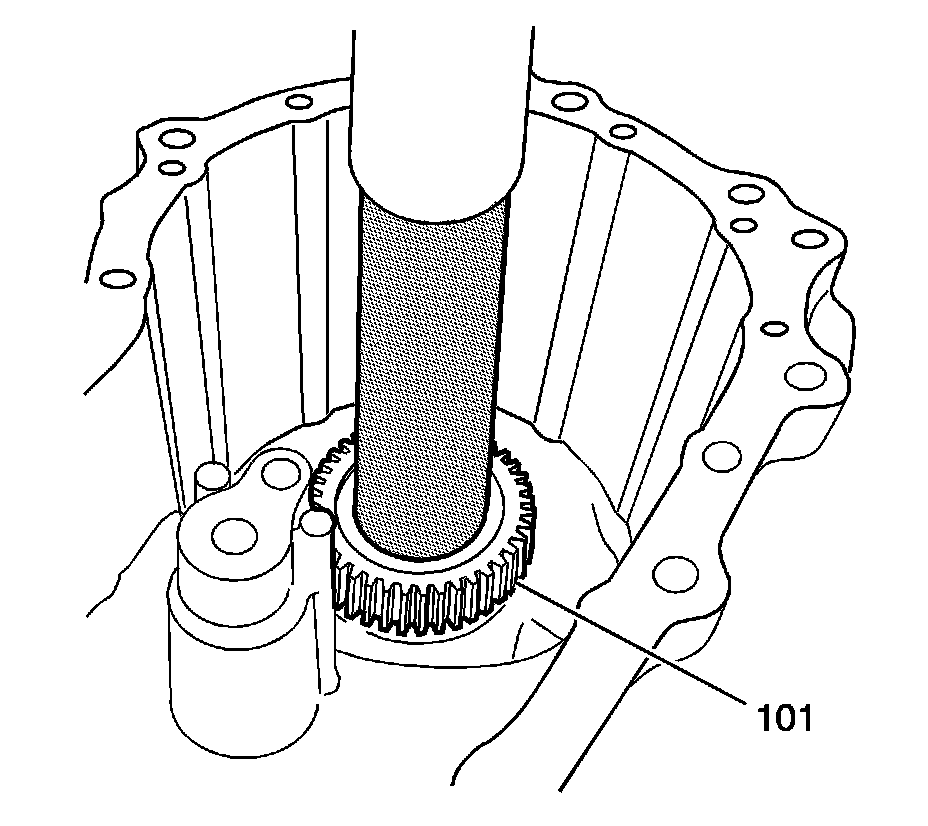 14. If the pinion gears are properly aligned, the sun gear (101) carrier assembly will rotate freely.