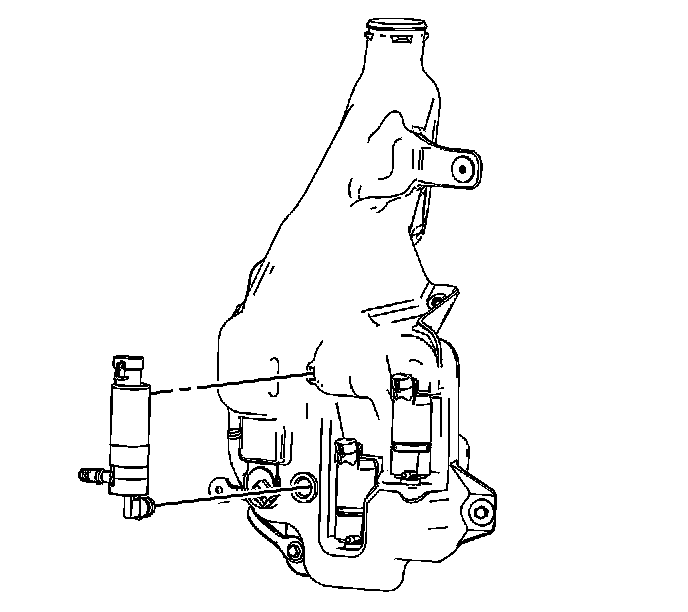 6. Hold the top of the washer pump with one hand and use a flat-bladed tool in order to pry the pump from the washer solvent container.