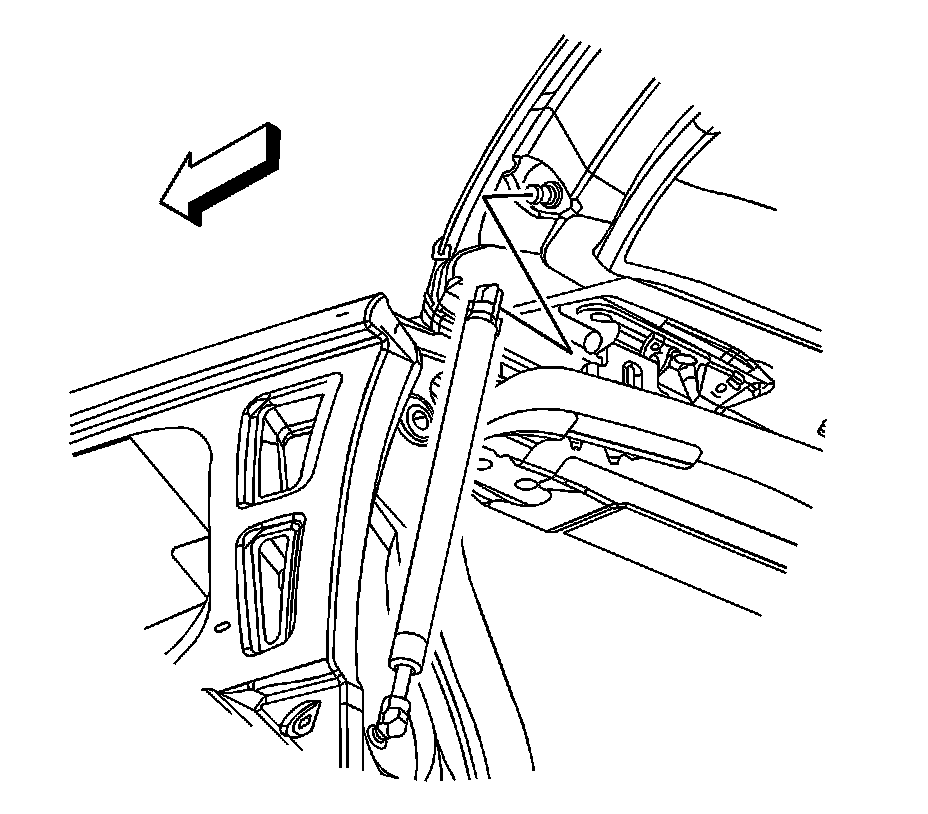 Notice: Apply pressure only at the end of the liftgate assist rod that you are removing or attaching. Do NOT apply pressure to the middle of the rod because damage or bending will result.