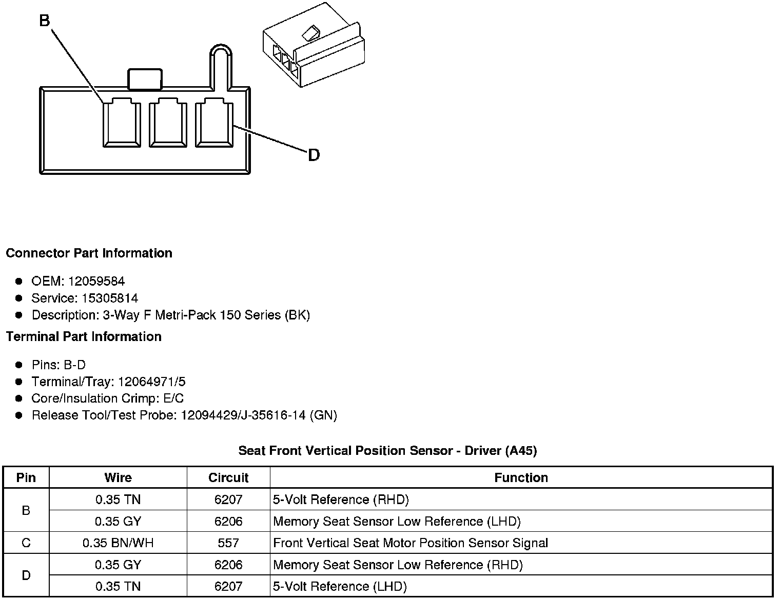 Seat Front Vertical Position Sensor - Driver (A45)