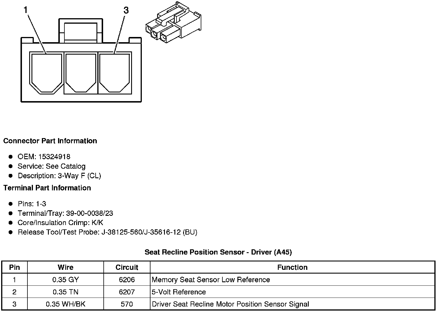 Seat Recline Position Sensor - Driver (A45)