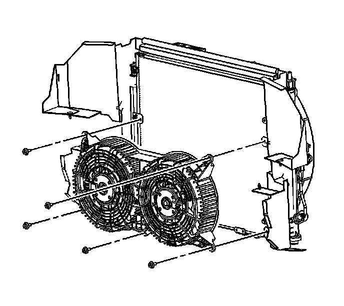 1. Remove the auxiliary cooling fan assembly to condenser upper mounting bolts.