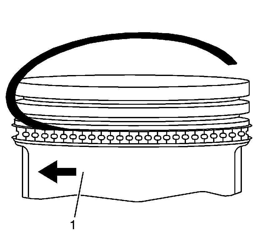 5. Install the upper oil control piston ring onto the piston (1).