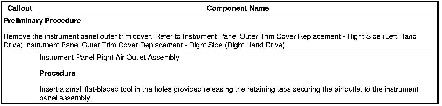 Instrument Panel Outer Air Outlet Replacement - Right Side (Left Hand Drive)