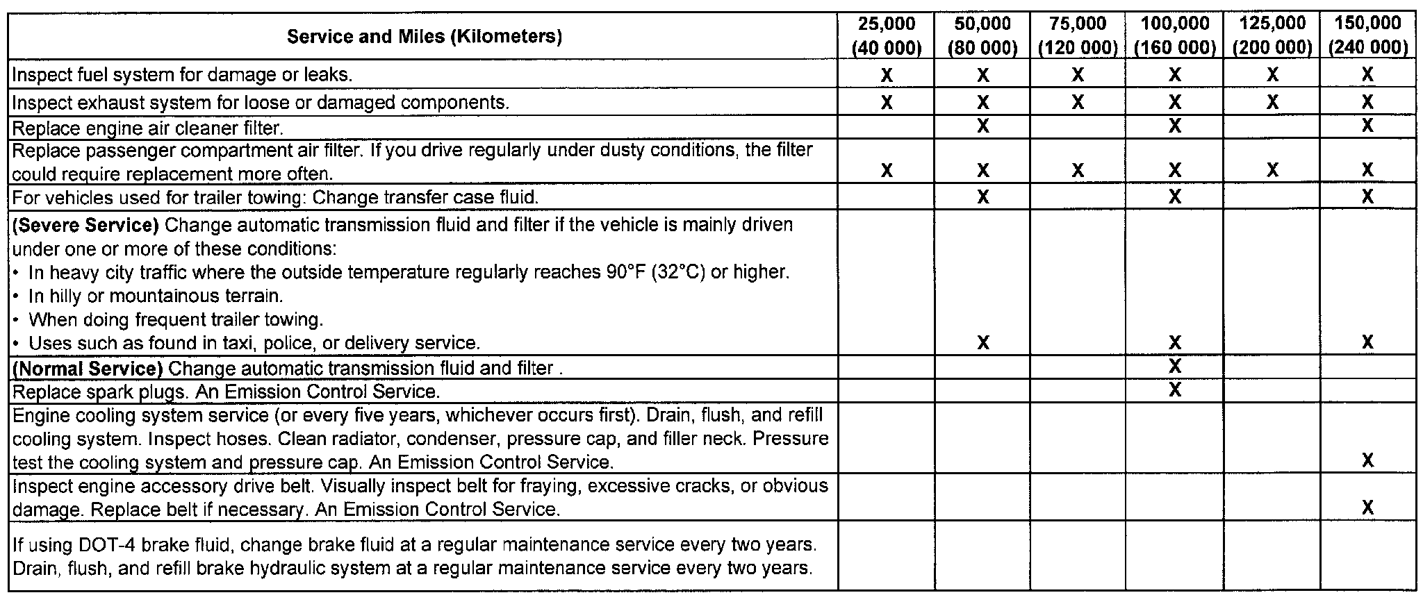 service (I or II) after the indicated miles (kilometers) shown for each item.