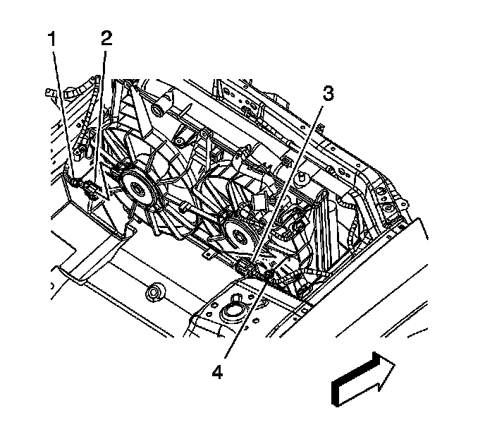 11. Remove the cooling fan wiring harnesses (1, 4) from the fan shroud.