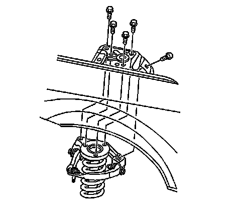 61. Remove the upper mounting bolts from the right and left shock module. Refer to Shock Module Replacement (Front Suspension Shock Absorber) .