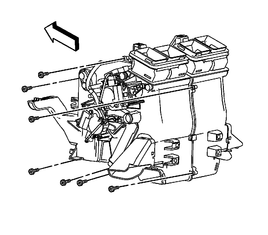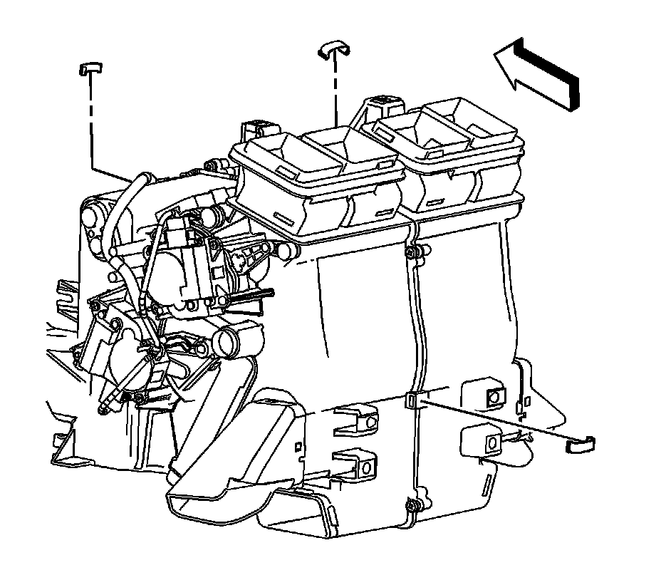1. Remove the HVAC module. Refer to HVAC Module Assembly Replacement (Left Hand Drive) (HVAC Module Assembly Replacement (Left Hand Drive))HVAC Module Assembly Replacement (Right Hand Drive) (HVAC Module Assembly Replacement (Right Hand Drive)) .