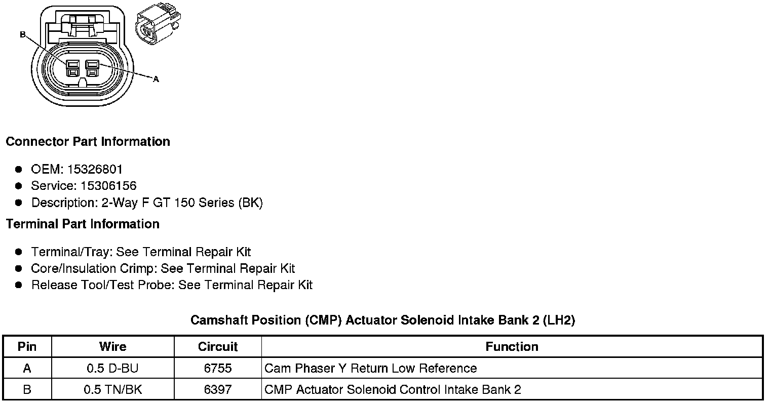 Camshaft Position (CMP) Actuator Solenoid - Intake Bank 2 (LY7 - Gas, 6 Cylinder, 3.6L, SFI, V6)