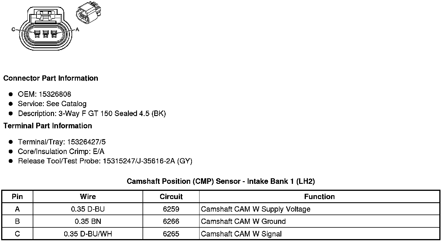 Camshaft Position (CMP) Sensor - Intake Bank 2 (LY7 - Gas, 6 Cylinder, 3.6L, SFI, V6)