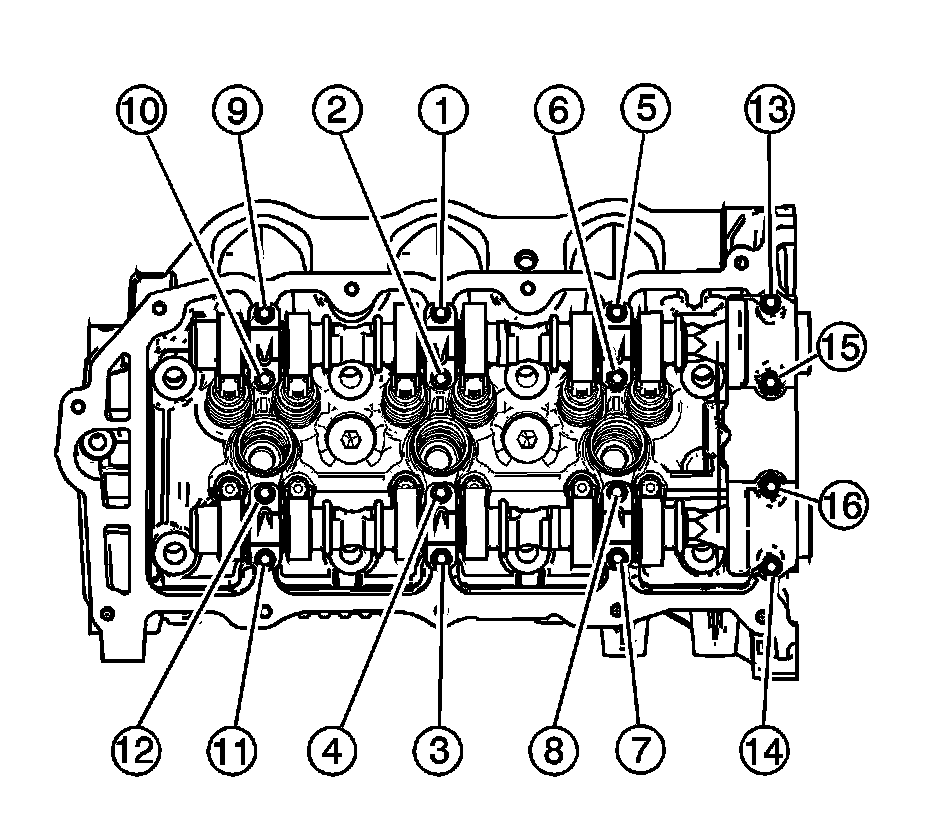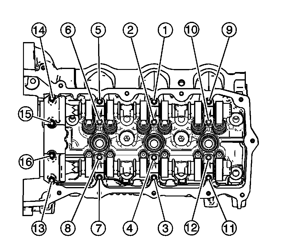 *Tighten the camshaft bearing cap bolts in the sequence shown.