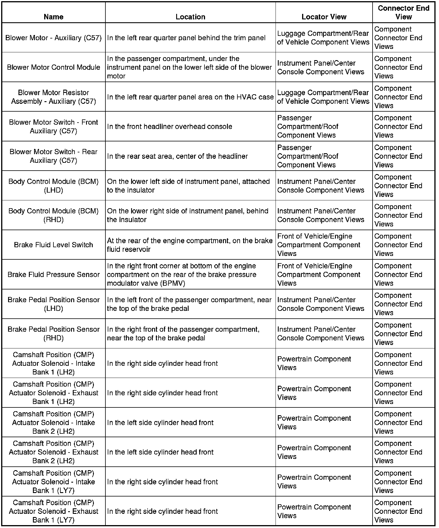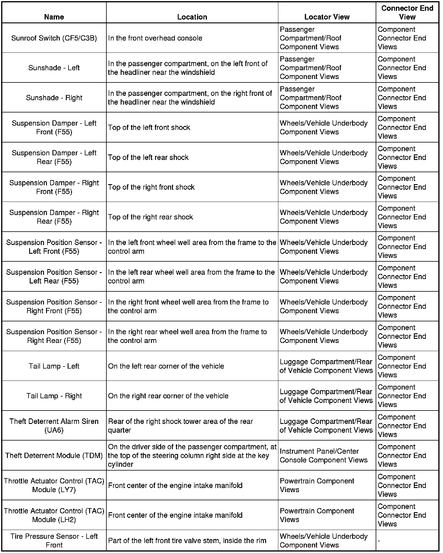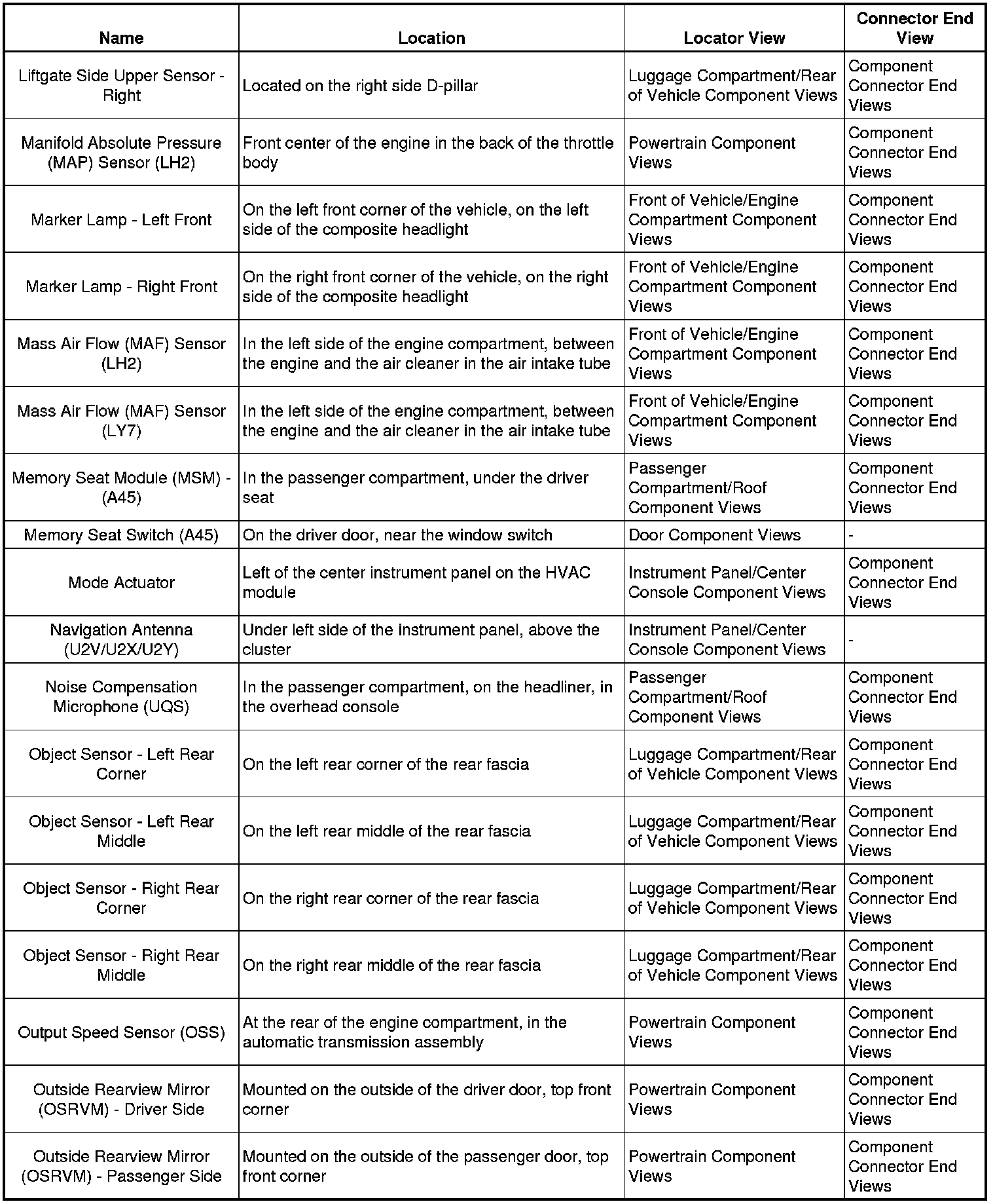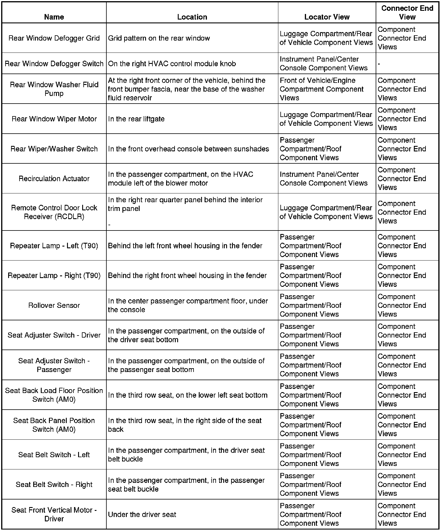 Master Electrical Component ListA/C - Ant: